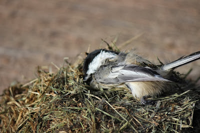| Black-capped Chickadee taking a chunk from the suet cupcakes. |